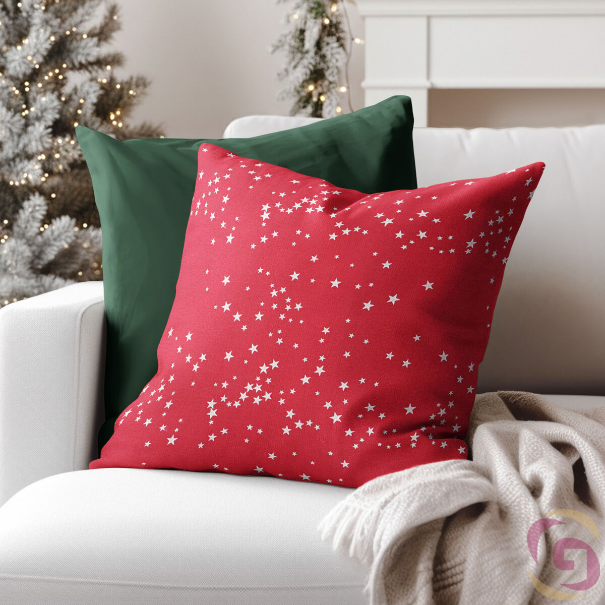 Weihnachtskissenbezug Valencia – Sterne auf rotem Hintergrund