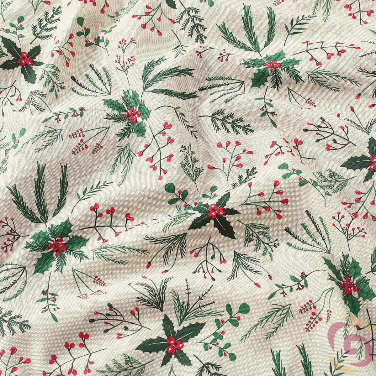 Weihnachtliche eckige Tischdecke Valencia - Zweige auf Naturfarbe