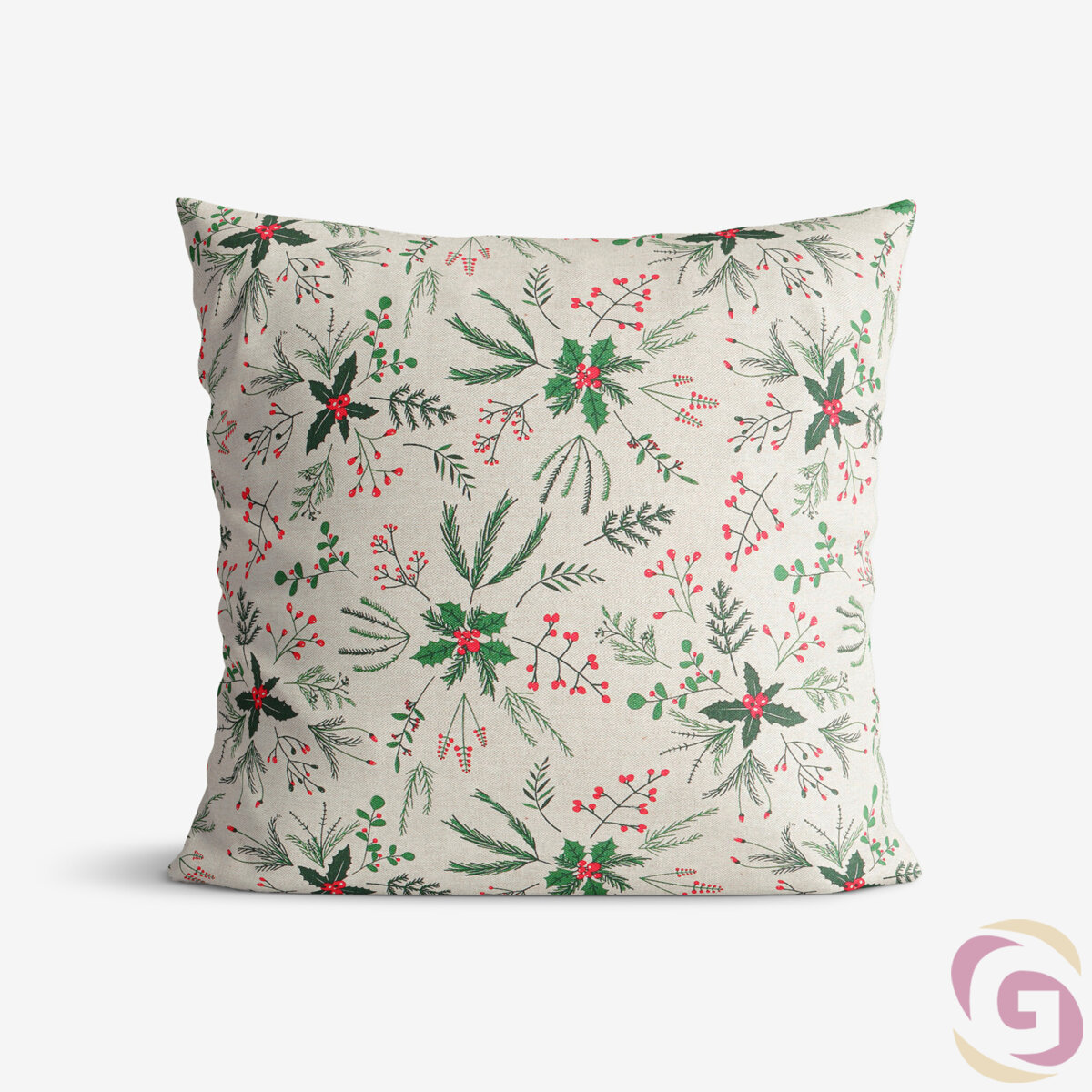 Weihnachtskissenbezug Valencia – Zweige auf Naturfarbe
