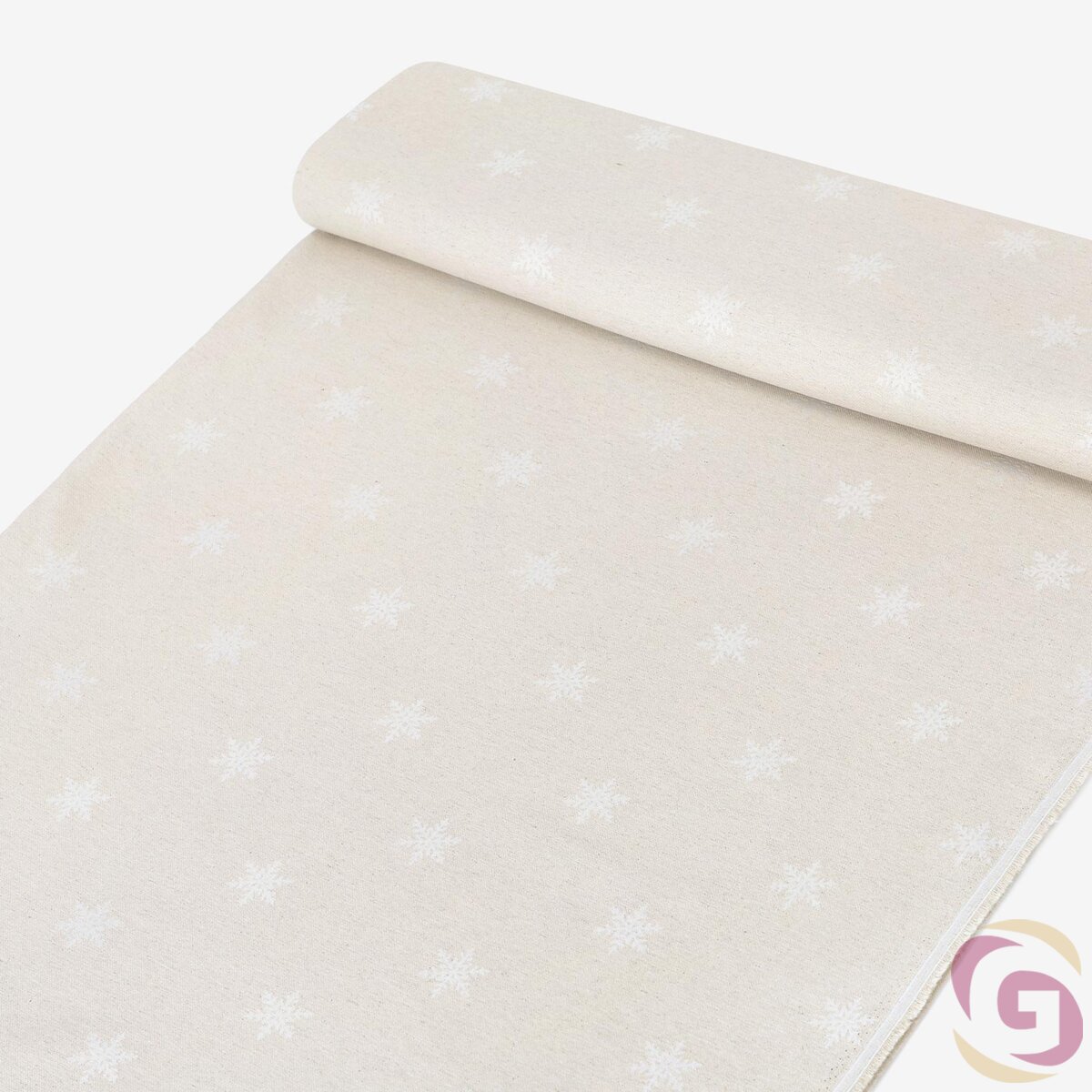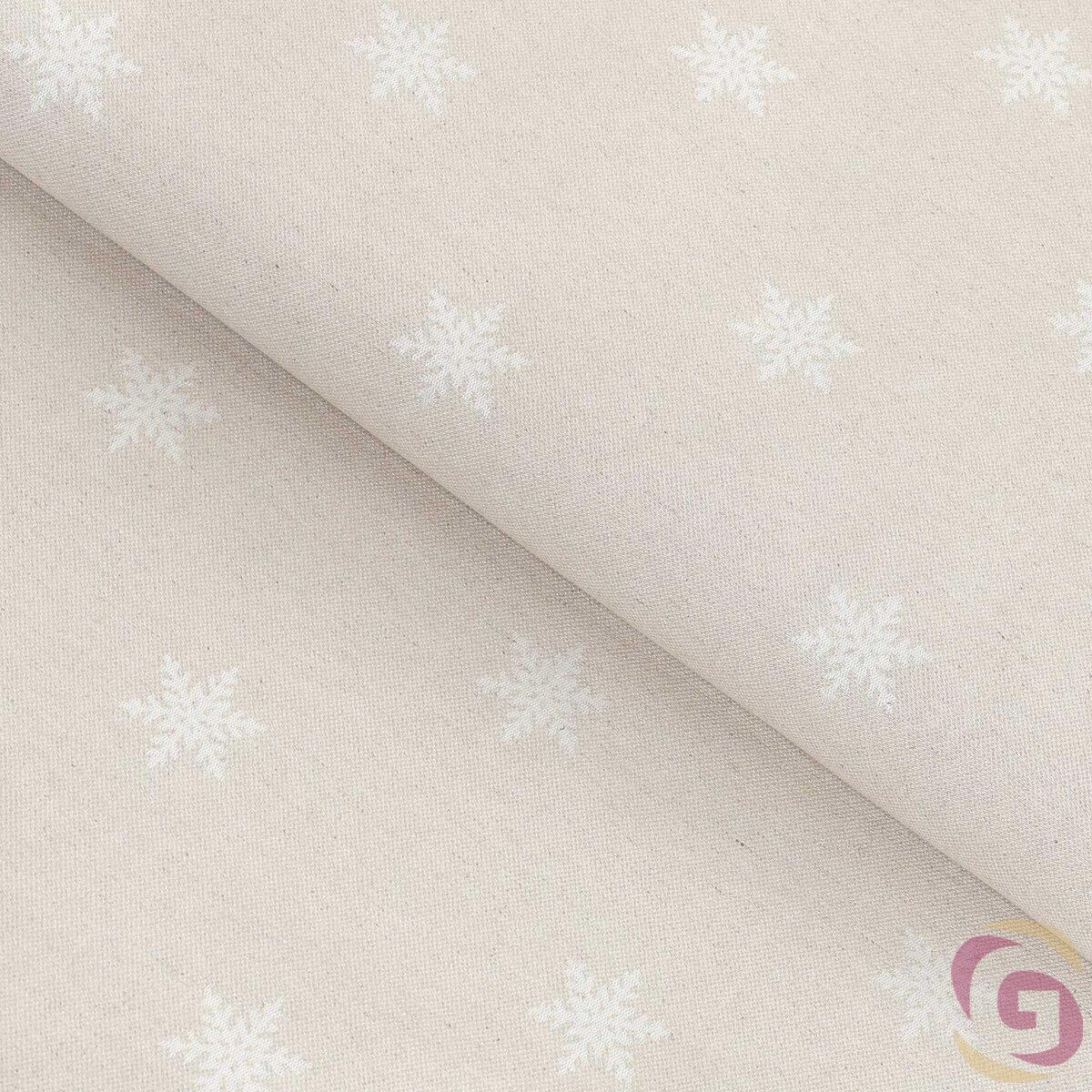 Weihnachtsstoff Natura - Schneeflocken auf natürlichem