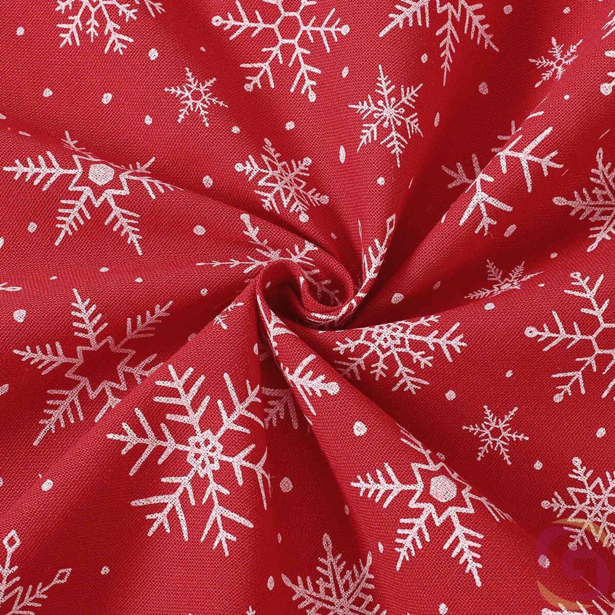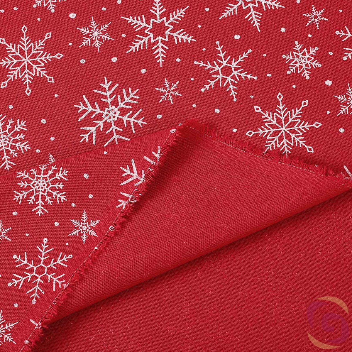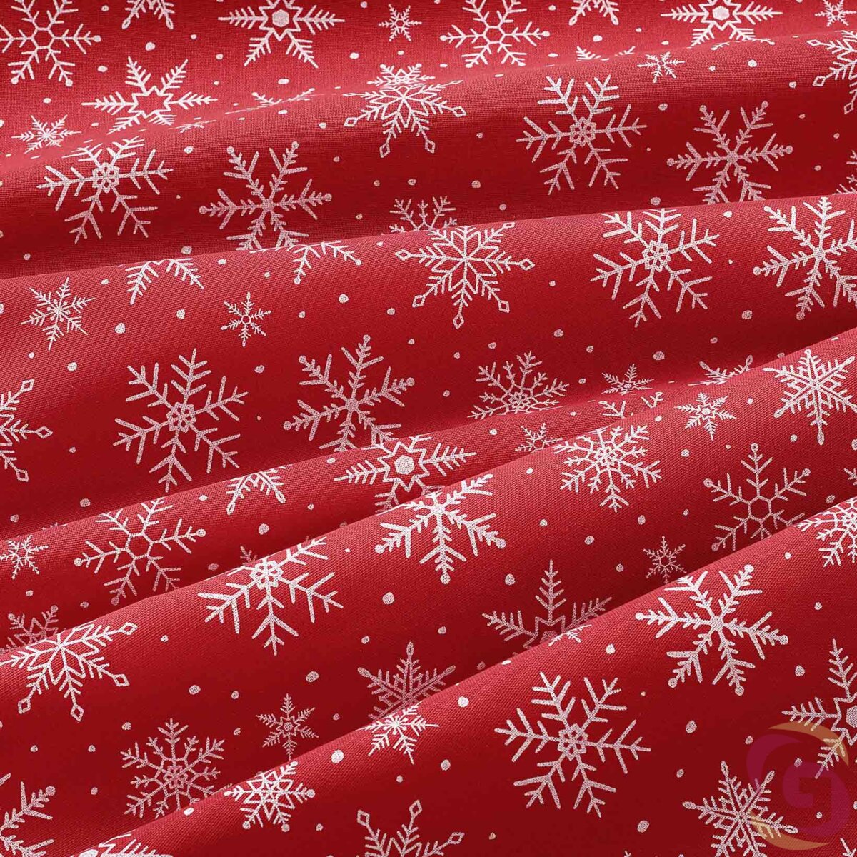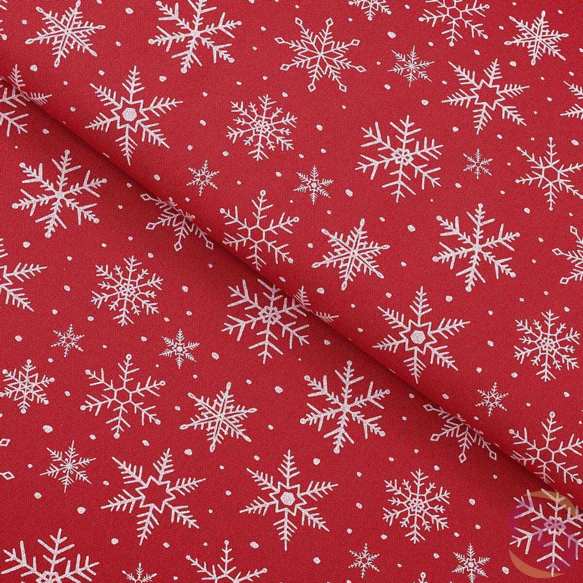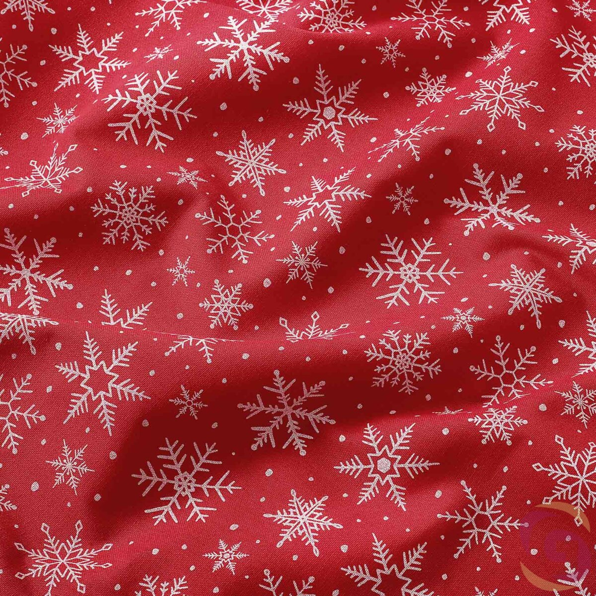 Weihnachtsstoff Valencia - Weiße Flocken auf Rot