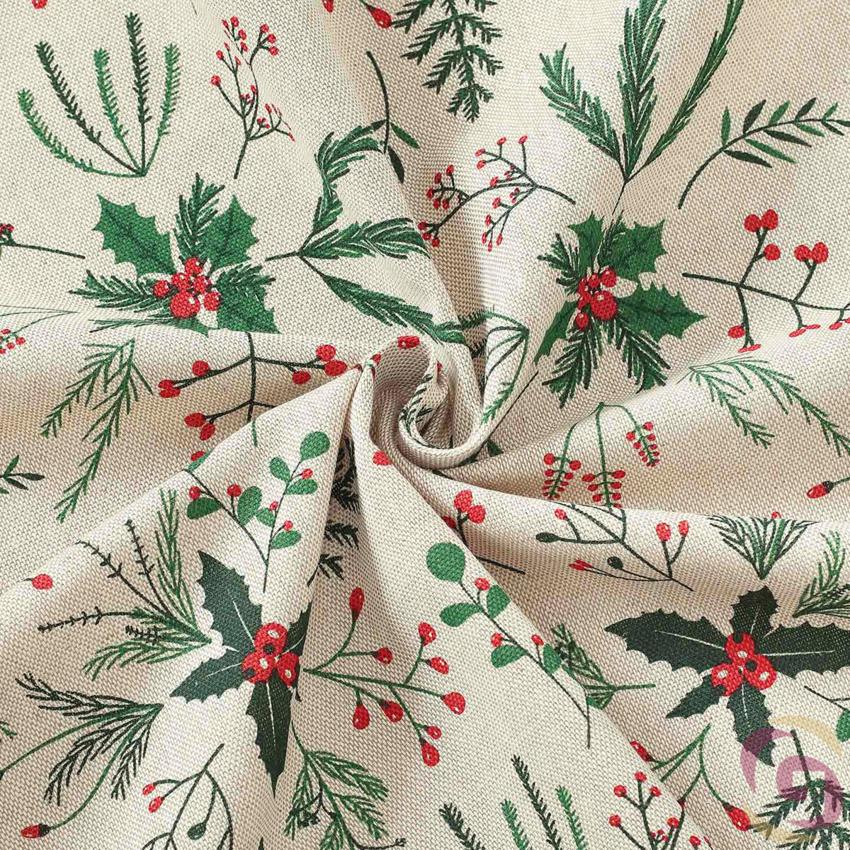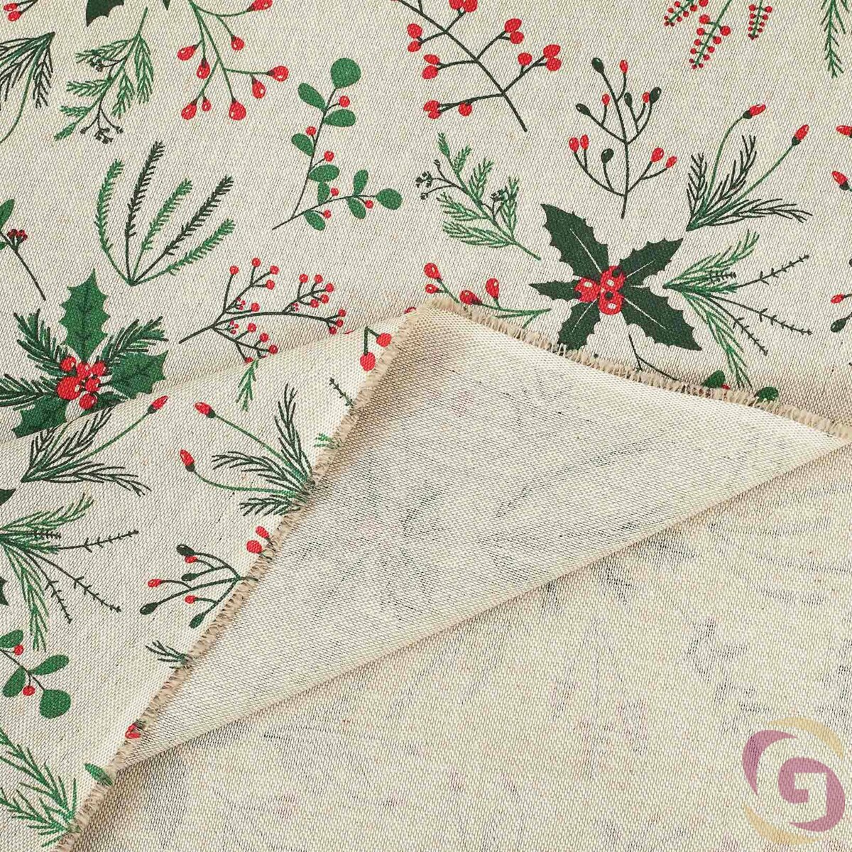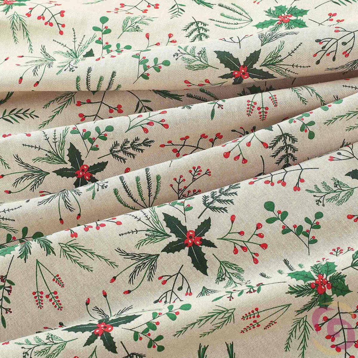 Ovale Weihnachts-Tischdecke Valencia – Zweige auf Naturfarbe