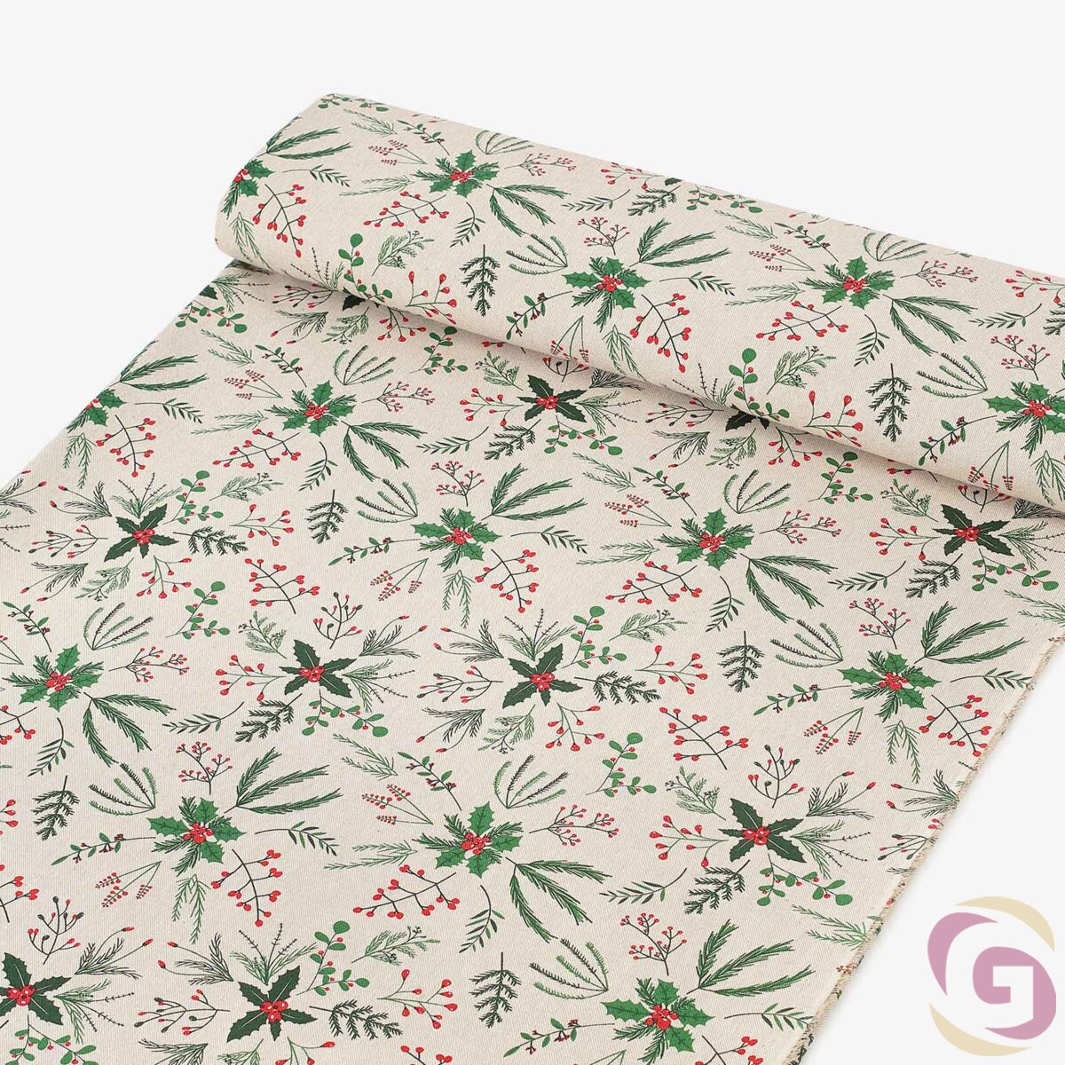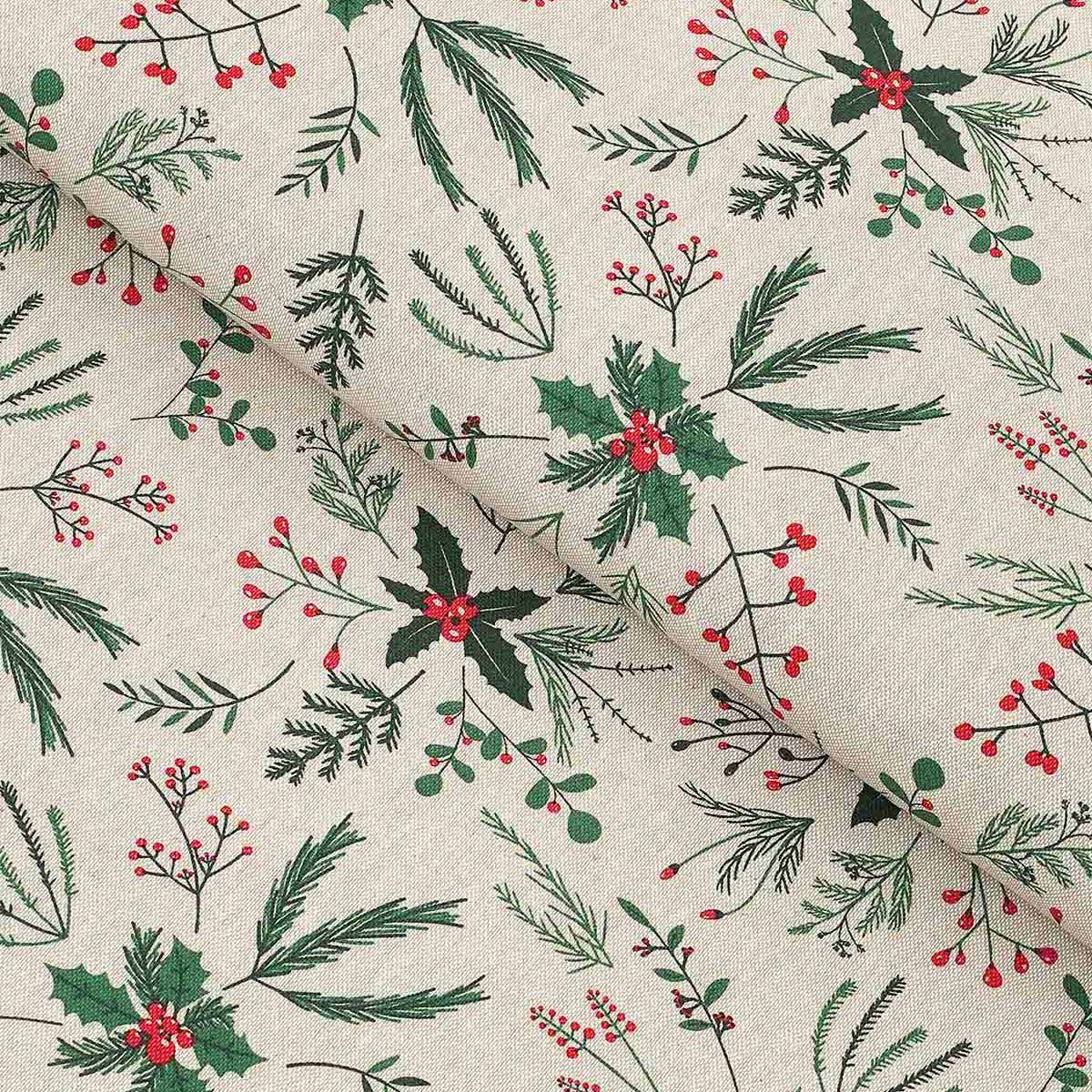 Weihnachtsstoff Valencia - Zweige auf Naturfarbe
