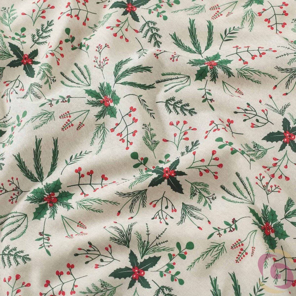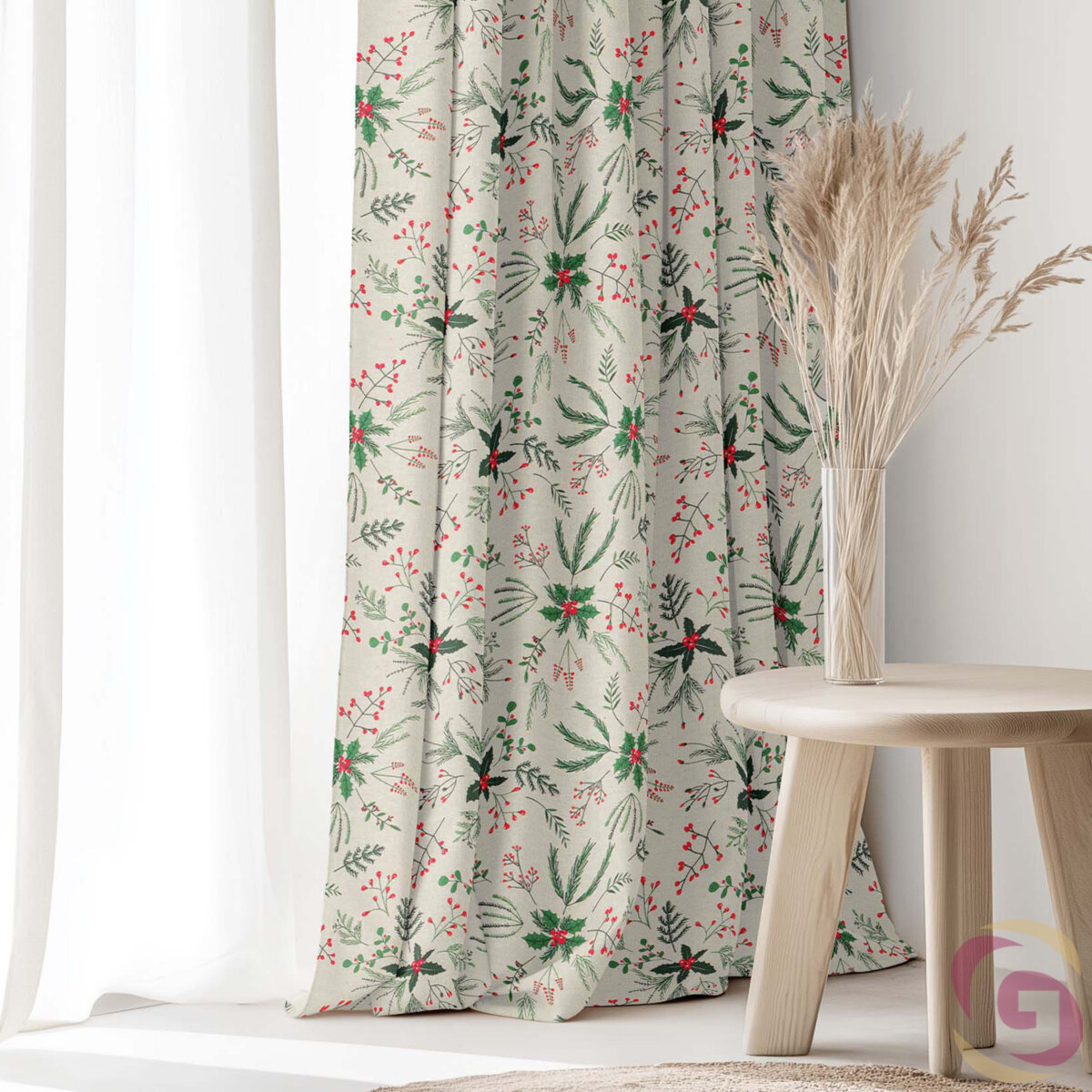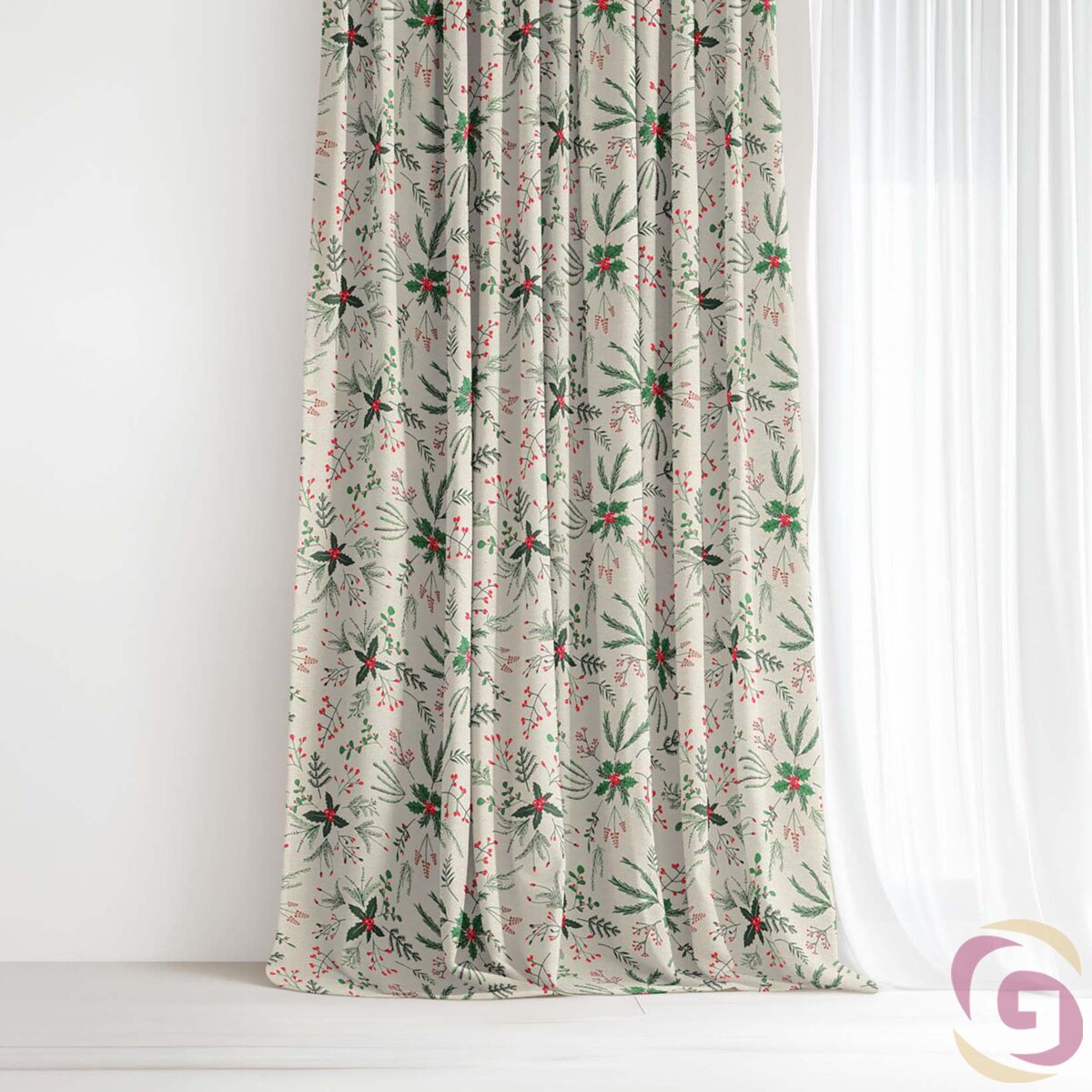 Weihnachtsvorhang Valencia – Zweige auf Naturfarbe